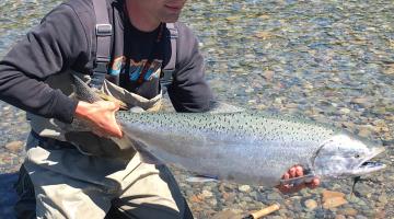 We reserved the peak weeks of the Kodiak Island King salmon run months ago to secure spots for our Epic guests. Our guests will be fishing the Ayakulik River staying at a camp run by Alpenview outfitters. They are the only licensed operator allowed to overnight with guests in the park in which the camp lies (Kodiak National Wildlife refuge). Fish in Solitude on our epic trips. Over a 4 month season the camp only sees 6-8 private groups float through in rafts. This allows for very exclusive access and fishing to an incredibly rich and productive river. Guests will be hunting the king of Pacific Salmon, chinook salmon on swung flies.